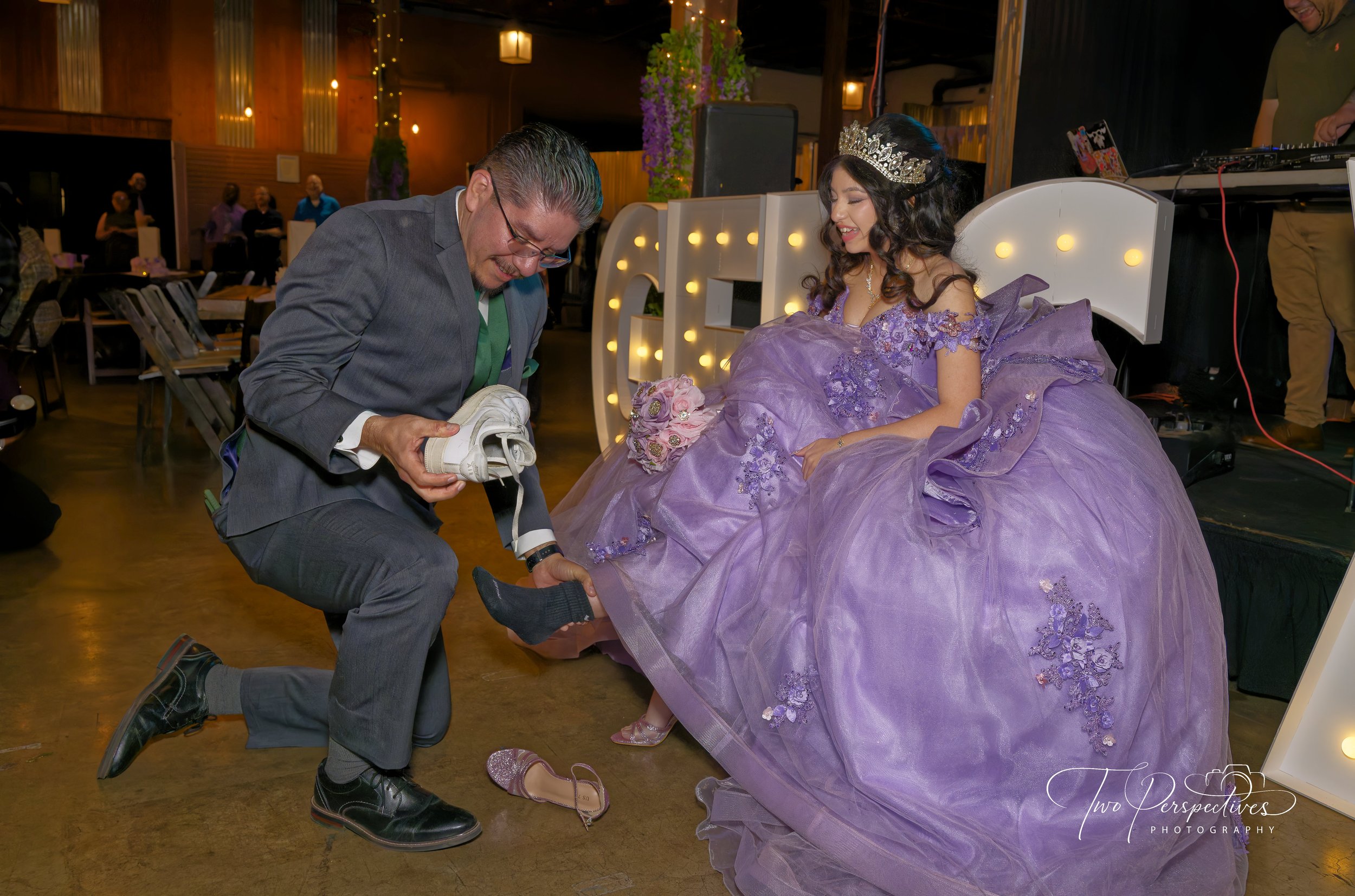 Very shortly after that was the changing of the shoes. This is supposed to symbolize the quince going from being a girl to becoming a woman. Her sneakers were removed by her father and replaced with a pair of heels.